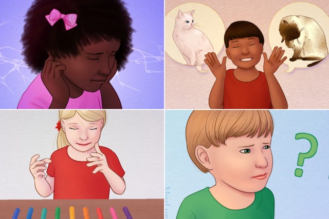 Top: Four images depicting autistic children by MissLunaRose12